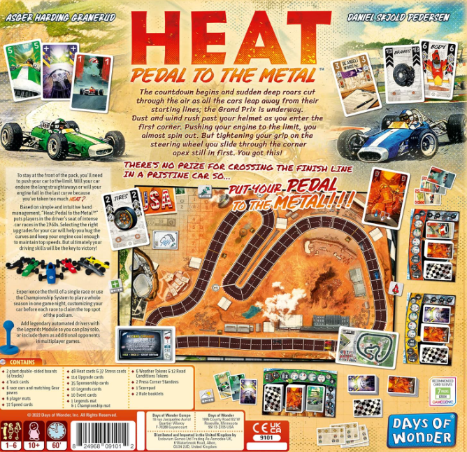 🔥 «Heat» es un juego de carreras estratégico que mezcla velocidad y tensión con decisiones tácticas. No gana solo quien corre más rápido, sino quien sabe cuándo acelerar, frenar o arriesgar sin que el motor explote. Ideal para fans de la velocidad, los motores y las decisiones intensas. ¡Perfecto para mesas con espíritu competitivo!