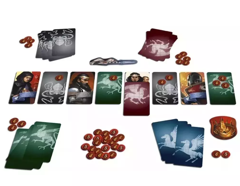 👑🗡️ En Oriflamme, cada jugador representa a una familia noble que lucha por el trono tras la muerte del rey. A través de intriga, engaño y estrategia, deberás jugar tus cartas boca abajo, tomar riesgos calculados y decidir el momento justo para revelar tus intenciones. ¡Todo vale en la lucha por el poder!